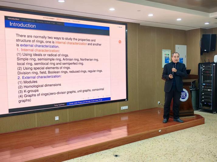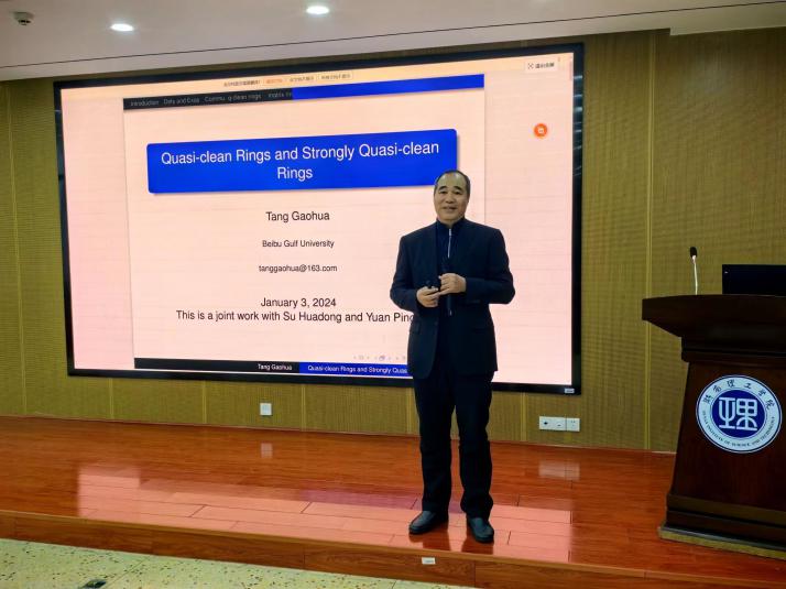 1月3日上午,北部湾大学唐高华教授应邀在17102报告厅为97久久精品人人澡人人爽师生做了题为“Quasi-clean Rings and Strongly Quasi-clean Rings”的“数学大讲堂”专家讲座,97久久精品人人澡人人爽副院长周小强(主持工作),副院长李松华、罗德仁,以及部分教师、全体研究生与会。