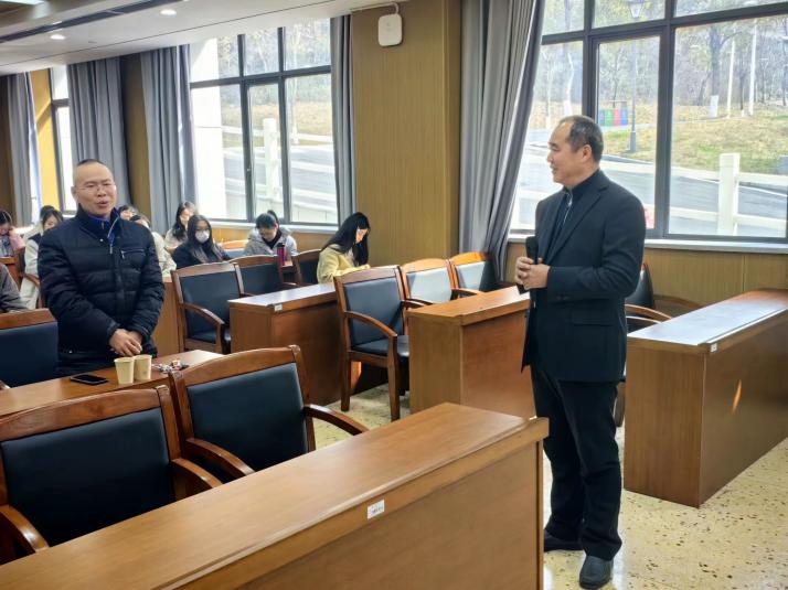 讲座中,唐高华教授讲述了从元素来刻画环的结构,介绍了近20年最主要的元素来刻画环的情况,结合五个关于环的clean性和强clean性的公开问题,通过改变前一个幂等元,结合高等代数的知识,定义了拟幂等元的概念,由幂等元到拟幂等元的变化引入到拟clean环到强拟clean环的变化,运用对比不同元素之间的关系,分别从背景、定义、介绍其交换的性质与矩阵环上的性质,同与会师生进行深入交流。此外,唐高华教授对湖理学子寄予厚望,真切地希望湖理学子能够成为国家的栋梁之材!