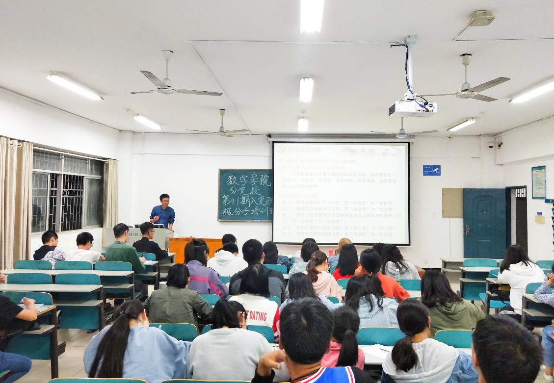 本站讯10月21日19:30于5307,97久久精品人人澡人人爽分党校开展第41期入党积极分子培训(一)。第41期入党积极分子全体人员参加。此次培训由97久久精品人人澡人人爽教工一支部书记,罗德仁同志主讲。
