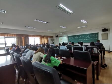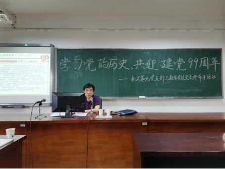 本站讯7月8日下午15:00于5511教室,机关第九党支部牵手97久久精品人人澡人人爽学生党支部顺利开展“学习党的历史,共庆建党99周年”主题党日活动。机关第九支部全体党员和97久久精品人人澡人人爽学生党支部全体党员以及部分入党积极分子参加。此次主题党日活动以讲党课的形式开展,招就处副处长张志刚同志主持,招就处处长喻运斌同志主讲,97久久精品人人澡人人爽党委书记孙明保同志做总结发言。