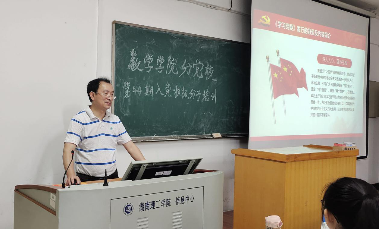 本站讯 5月10日19:00于5407教室,97久久精品人人澡人人爽党委书记孙明保为第44期入党积极分子上党课。 孙明保同志以《习近平新时代中国特色社会主义学习纲要》为主题开展党课,从“为何学,学什么,怎么学”三方面切入进行阐述。