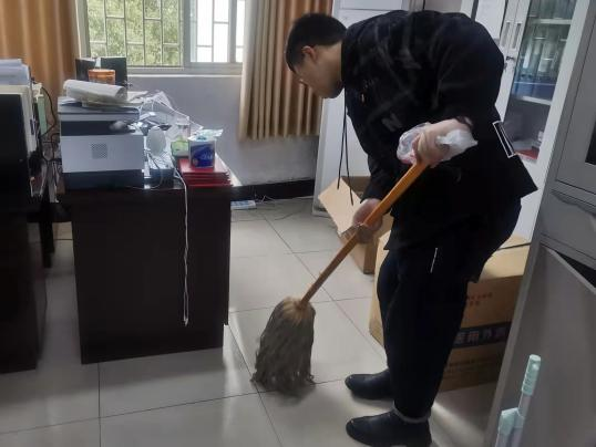 活动开始前,全体党员在五号教学楼大厅集合,纪检工作室进行人员点到,并对党员进行活动分组。活动期间,大家手持扫把,抹布等清洁工具,充分发扬不怕脏、不怕累的志愿奉献精神,积极对教学楼的楼梯扶手、楼道杂间、地板污渍、教室进行清洁,将区域内的纸屑、塑料袋等垃圾进行清理。