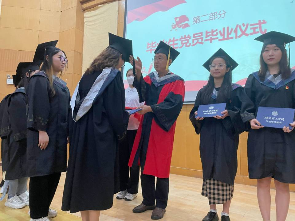宣誓仪式结束,全体毕业生党员依次上台,宁立伟同志为他们一一拨穗、正冠、颁发学位证并向他们表示真切的祝贺。毕业生党员们通过庄严隆重的仪式与校长亲切接触,使得他们在离校前充分感受到母校的温暖与关怀,增进他们对母校的认同感。