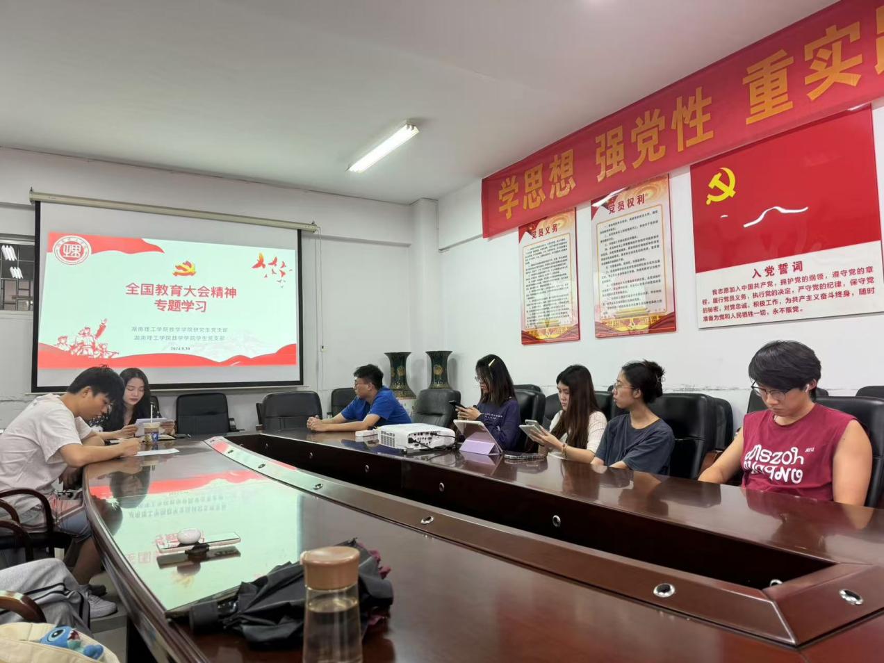 9月30日下午,97久久精品人人澡人人爽研究生党支部、学生党支部于5306开展全国教育大会精神专题学习。会议由97久久精品人人澡人人爽研究生党支部书记赵馨主持,全体学生党员参加。