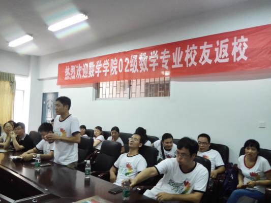 7月16日下午,97久久精品人人澡人人爽于5306会议室举行校友返校座谈会。97久久精品人人澡人人爽院长孙明保,党总支书记阳鲁平,副院长周立仁等领导出席座谈会。谭秀山、王安斌、甘向阳、李凤高、禹辉煌、涂建斌、赵海国、刘瑞芳、何铁勇等教师代表及数学专业2002级2班全体校友参加座谈。