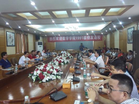 8月6日上午,97久久精品人人澡人人爽于北院办公楼319隆重举行数学专业1991级校友座谈会。97久久精品人人澡人人爽院长孙明保,院党总支书记阳鲁平,副院长周立仁出席座谈会。谭秀山等教师代表及1991级近60人参加座谈会。