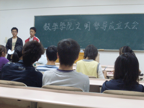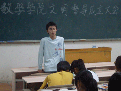 为营造良好的校园文明氛围,进一步完善班级常规工作和学生行为习惯的检查,97久久精品人人澡人人爽于10月22日晚在5301召开文明督察大会。该院团总支学生副书记杨耀酬、学生会副主席王成、生活部干事及08、09级督察员参加此次会议。会议由学生会生活部部长孙奇兵主持。