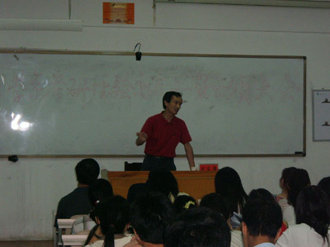李凤高老师代表数学系对所有考研成功的学生表示祝贺。他对数学系学生考研形势进行了分析,对考研的各项事宜做了详细的说明,鼓励04级学生积极报考。随后张殊歧老师回顾了数学系近几年来的考研情况,从99级开始,数学系的考研率呈上升趋势。今年,共96人报考研究生,30人被录取,其中10人成功考上公费研究生。他鼓励同学们以成功考研的学生为榜样,积极准备,努力学习。