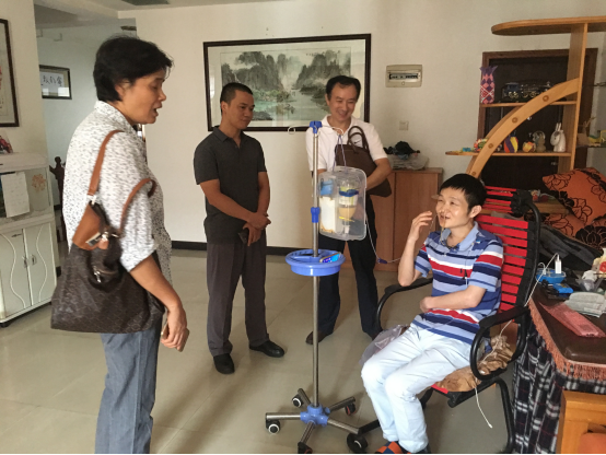 万博士虽然挂着药瓶,但精气神依旧很足,他详细介绍了目前的情况,俨然一个“良医”。两位领导转达了学校领导的关心和问候,送上慰问金,鼓励万博士树立信心、相信科学、怀抱必胜的信念与病魔作斗争。学校会尽力解决万博士在寻医问药和经济方面的困难。祝愿万博士早日恢复健康!