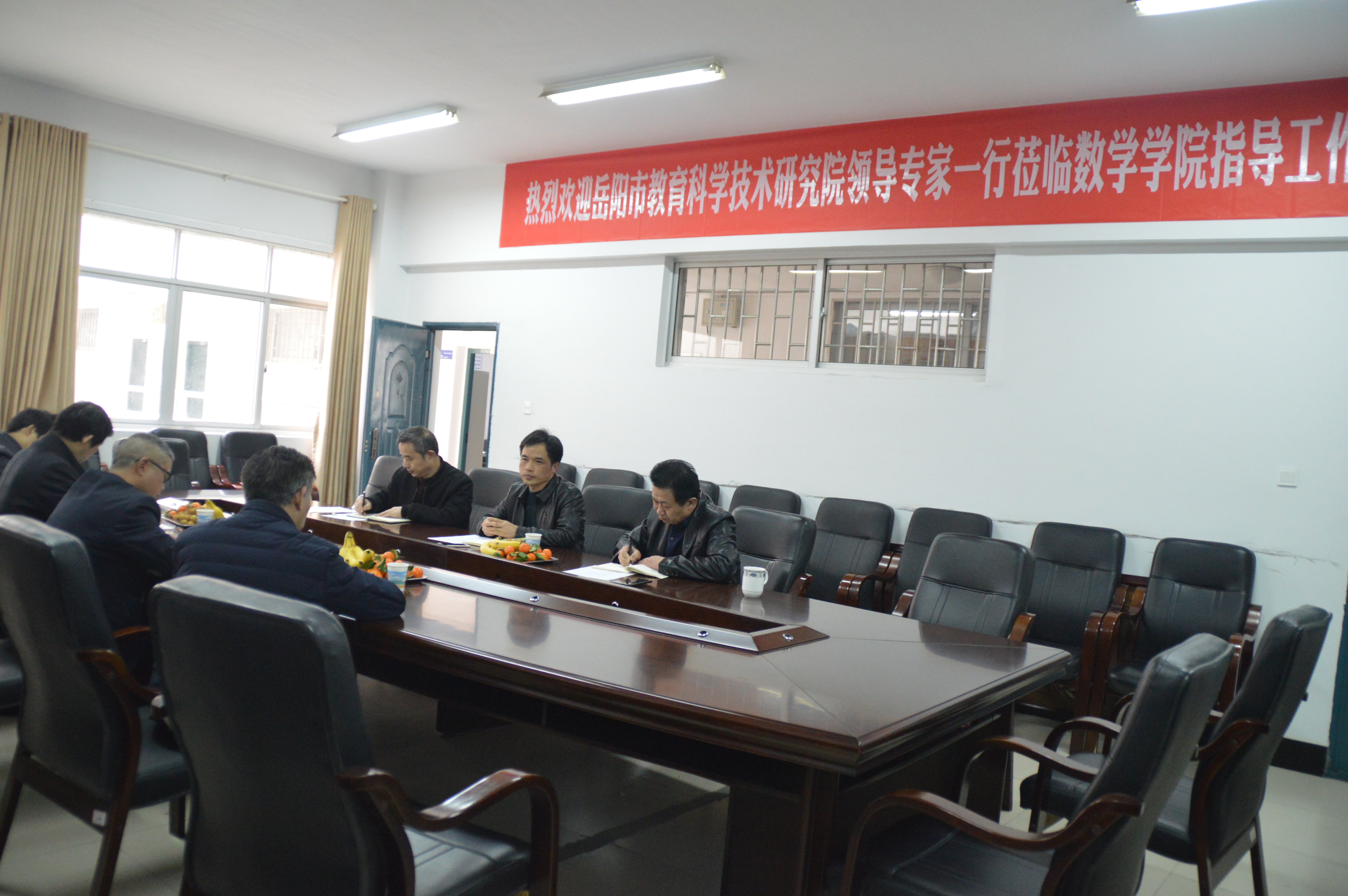 3月9日下午,岳阳市教育科学技术研究院院长廖小光、副院长魏建军、教研员费建华、何雄一行4位专家应邀来到我院指导工作,就我院数学与应用数学教师教育专业培养方案修订与实践教学改革展开研讨。