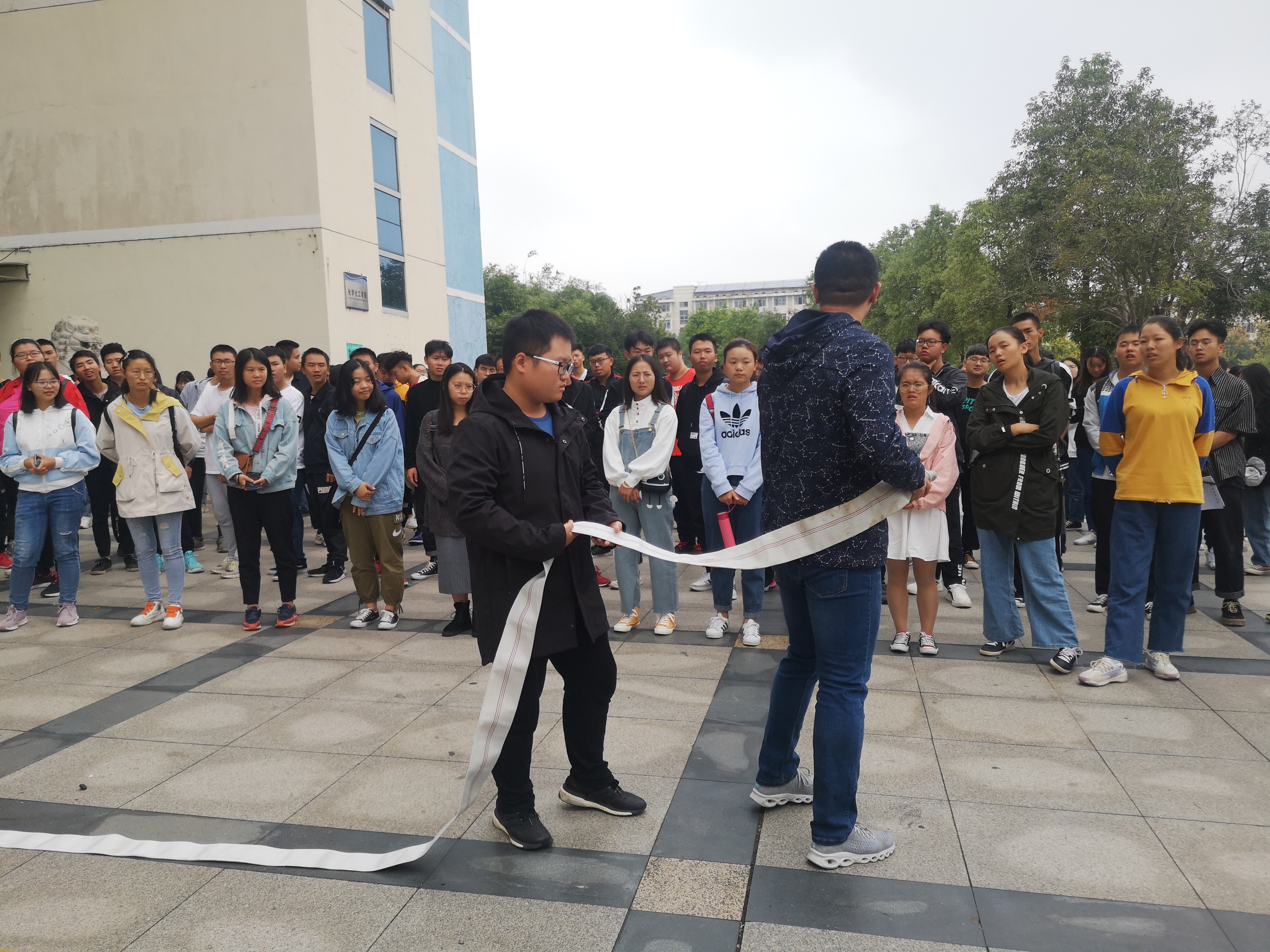 最后梅傲寒同学讲述了消防水枪的具体操作要领,组织大家观看了消防栓出水的演练,在场的同学也积极参与到实践中。