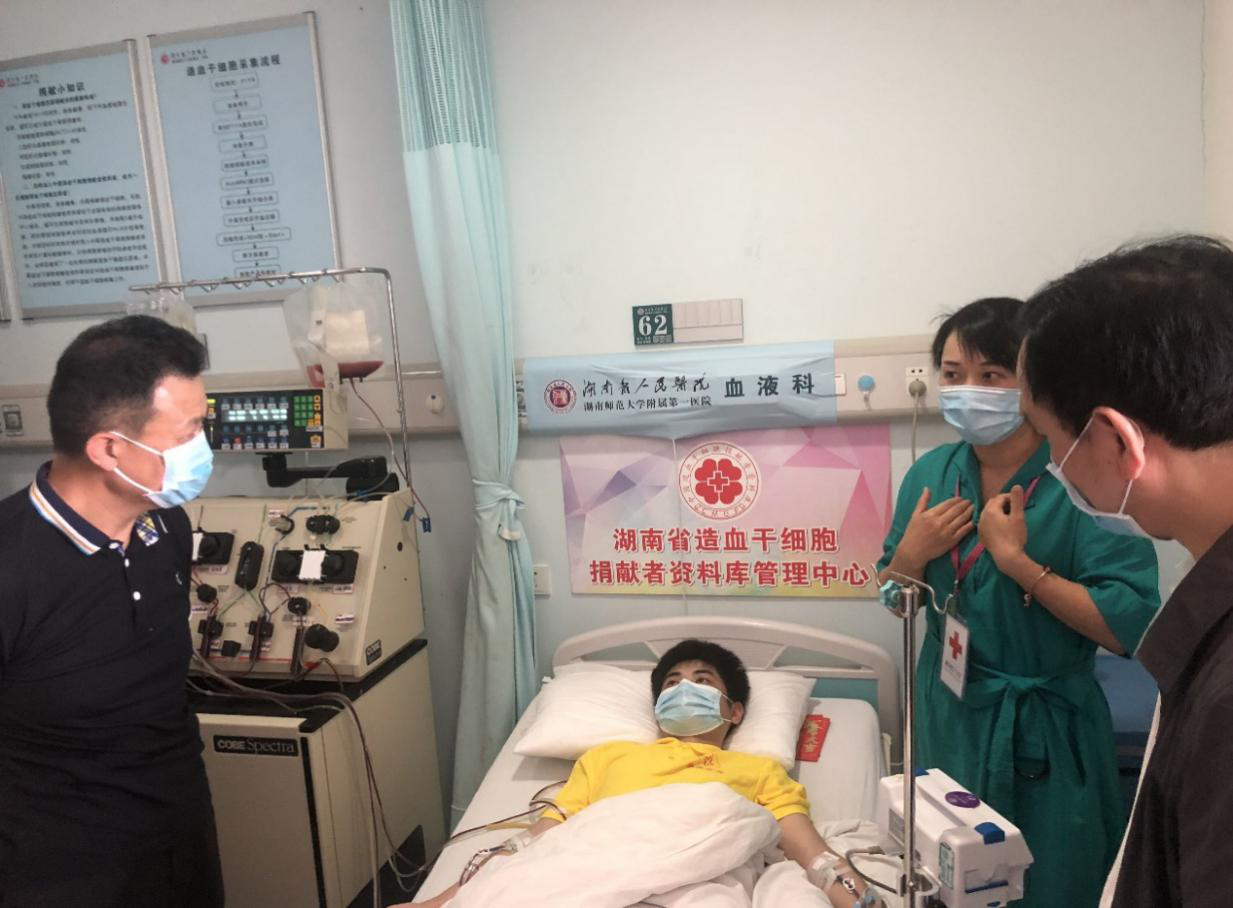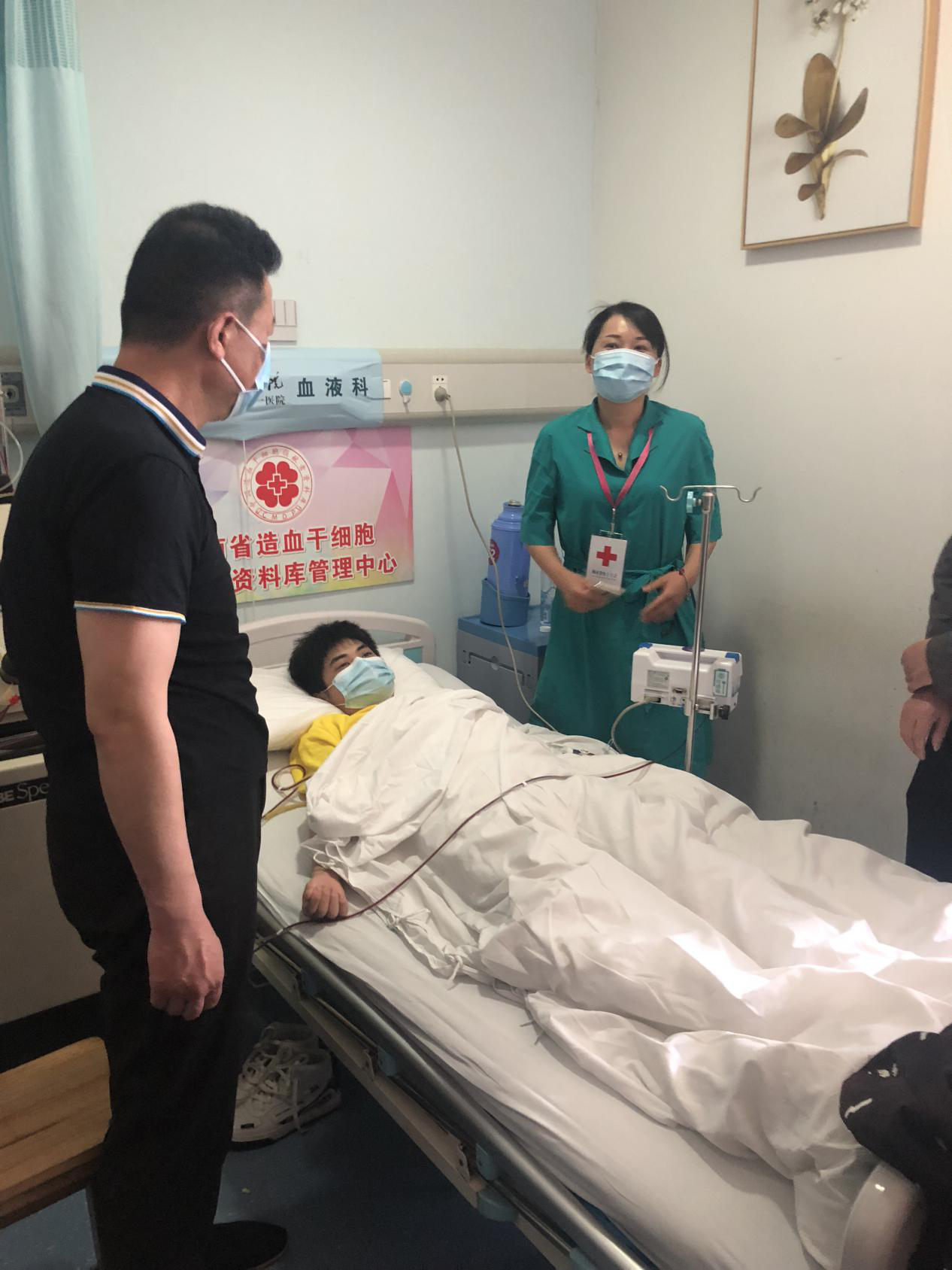 造血干细胞是昨天采集完成的,一次采集成功。从早上8点到下午3点多一直躺床上输液,针扎手臂上开始还是很痛的。但整个采集过程完成得非常顺利,非常感谢学校以及学校学院领导能够在百忙之中抽空来看望我,也感谢学校以及学院对我的支持与鼓励。