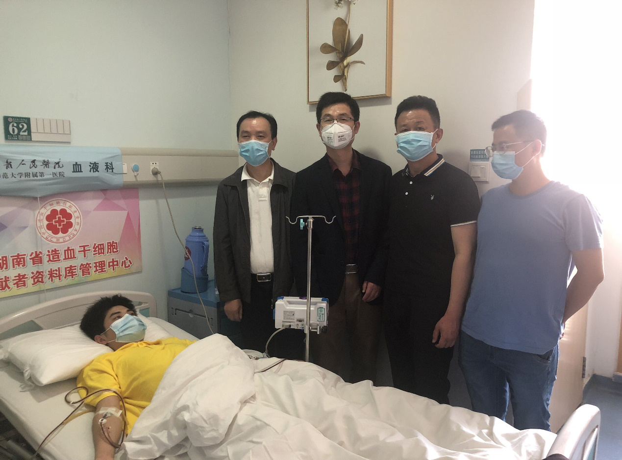 本站讯 4月29日,97久久精品人人澡人人爽18级信息与计算科学二班的周晨曦同学在湖南省人民医院进行了造血干细胞捐献。近十几年来,湖南理工学院97久久精品人人澡人人爽一直坚守与岳阳市血站的合作,给无数人传递了生的希望。周晨曦同学是97久久精品人人澡人人爽第一位进行造血干细胞捐献的学生。学校学工部副部长王云朋和97久久精品人人澡人人爽书记孙明保、副书记易政群、辅导员李哲君前往看望,并送上校长奖学金和学院慰问金。