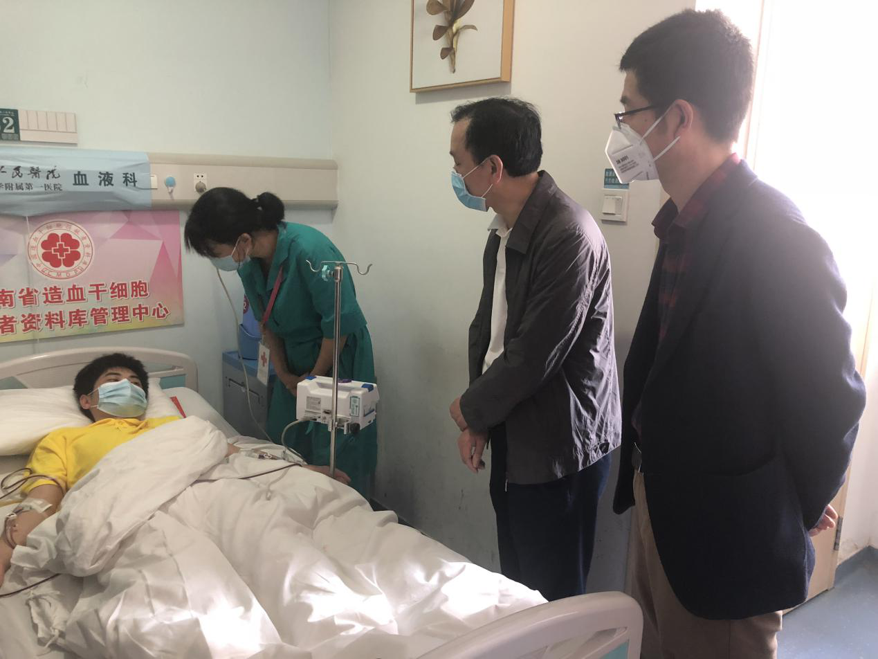 29日一早捐献前,学校学工部负责人和学院领导老师们带着全校师生的心意去医院看望和慰问这位勇敢的男孩,为他带去了校、院慰问金以及“校长奖学金”表彰文件。老师们详细地询问了周晨曦的身体状况和精神状态,大力表扬他的善举为全校师生起到了模范带头作用,也为患者架起了生命的桥梁。