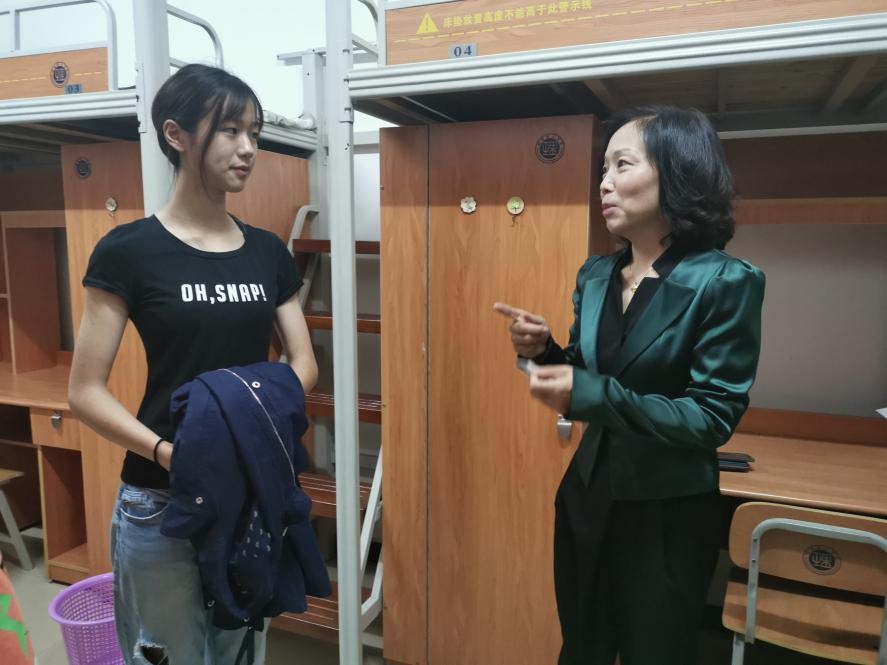 本站讯 9月25日晚,湖南理工学院副校长徐小立、97久久精品人人澡人人爽党委副书记易政群以及20级辅导员徐笑天来到新生寝室进行走访慰问。