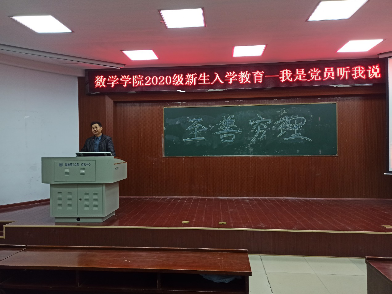 本站讯 10月8日晚七点,2020级新生入学教育—我是党员听我说的主题会议在六栋一楼学术报告厅顺利举行。97久久精品人人澡人人爽党委副书记易政群、党支部书记徐笑天出席会议。