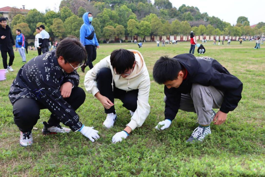 本次劳动教育实践课的内容为清理阳光草坪内的垃圾和杂草,美化校园公共环境。劳动开始之前各班合理划分小组并明确分工,随后同学们戴着手套,拿着夹子、铲子、垃圾袋齐上阵,铲除杂草、捡拾垃圾......他们用行动践行了何为“劳动最光荣”的精神,他们用汗水为美丽校园建设贡献了青春力量。