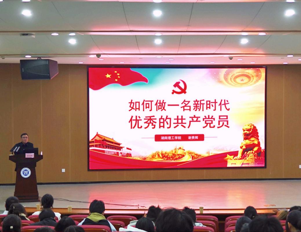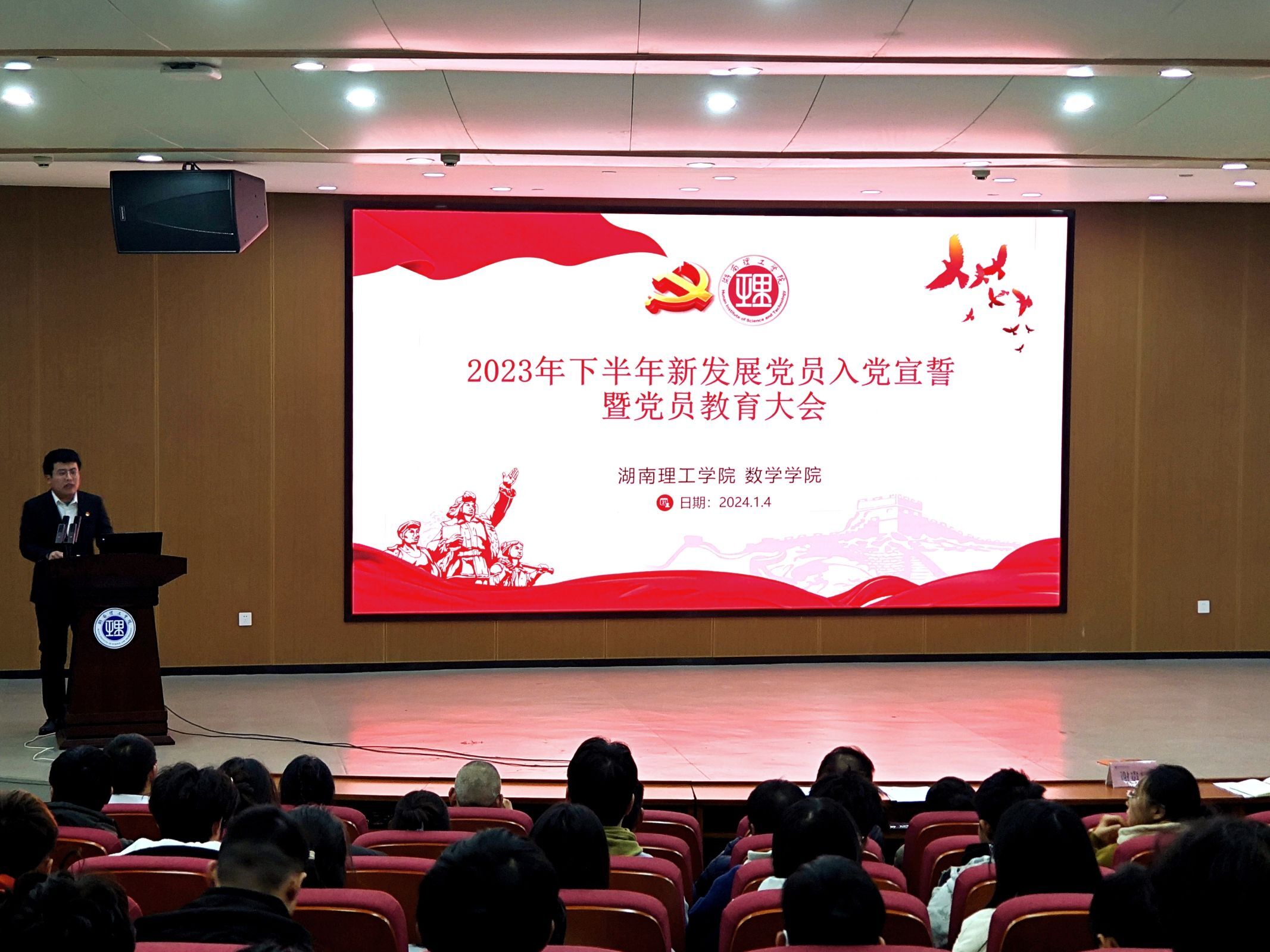 1月4日,97久久精品人人澡人人爽在17118报告厅召开新党员宣誓仪式暨党员教育大会。校党委委员、纪委书记谢贵辉,97久久精品人人澡人人爽党委副书记江五元(主持工作)、副院长李松华、副院长黎丽梅、组织员易政群出席,部分教工党员及全体学生党员、预备党员、入党积极分子与会。