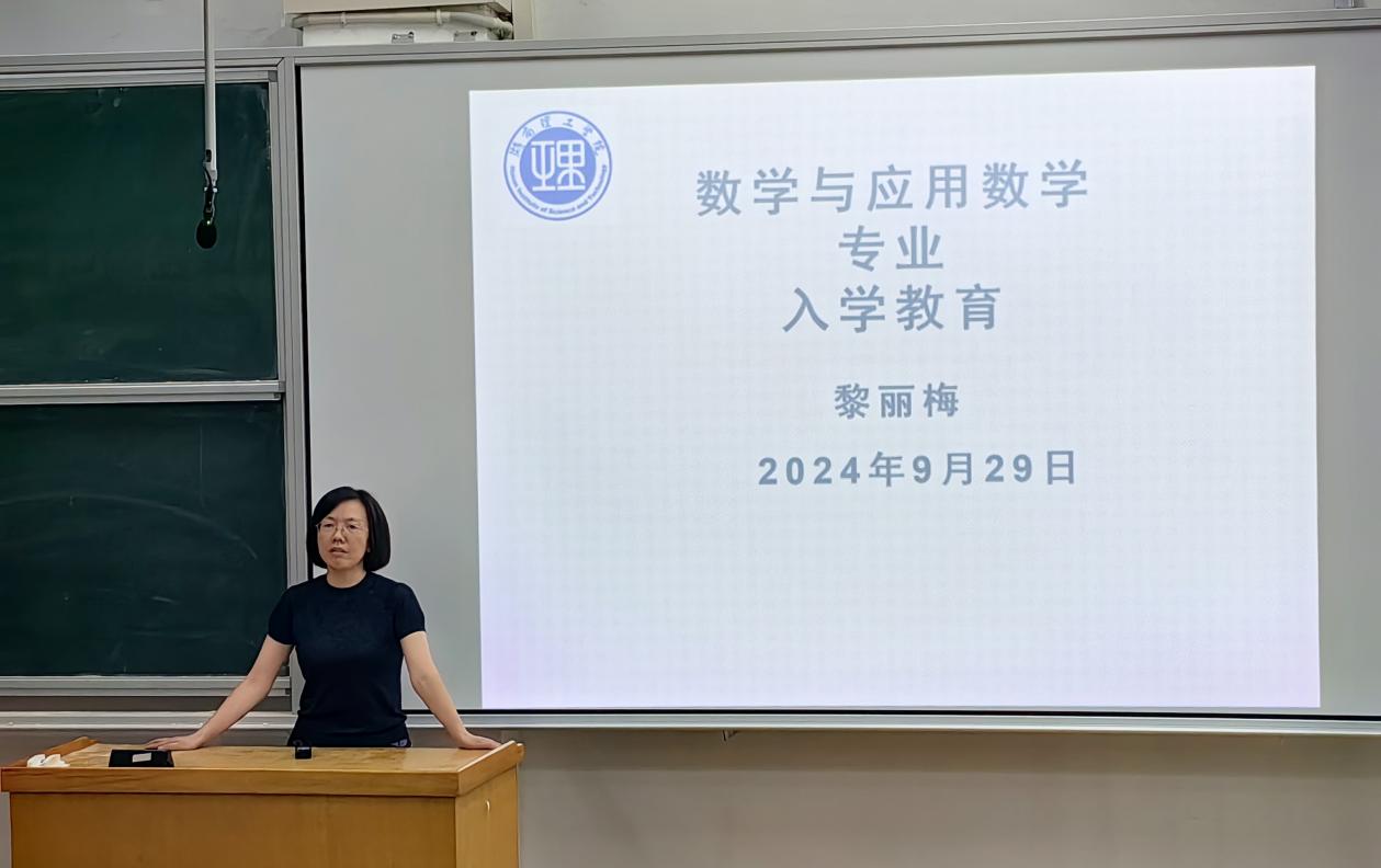黎丽梅以“数学不仅是科学的基础,更是培养逻辑思维和解决问题能力的重要工具”这一论述吸引了与会学生的注意。她从数学相关专业的分类、数学与应用数学(师范)专业的培养方案,以及该专业的应用前景与就业方向三个方面进行了详尽的解读。黎丽梅强调,2024级新生应尽早树立明确的目标,充分利用大学的教育资源,努力成为优秀的数学教育工作者。