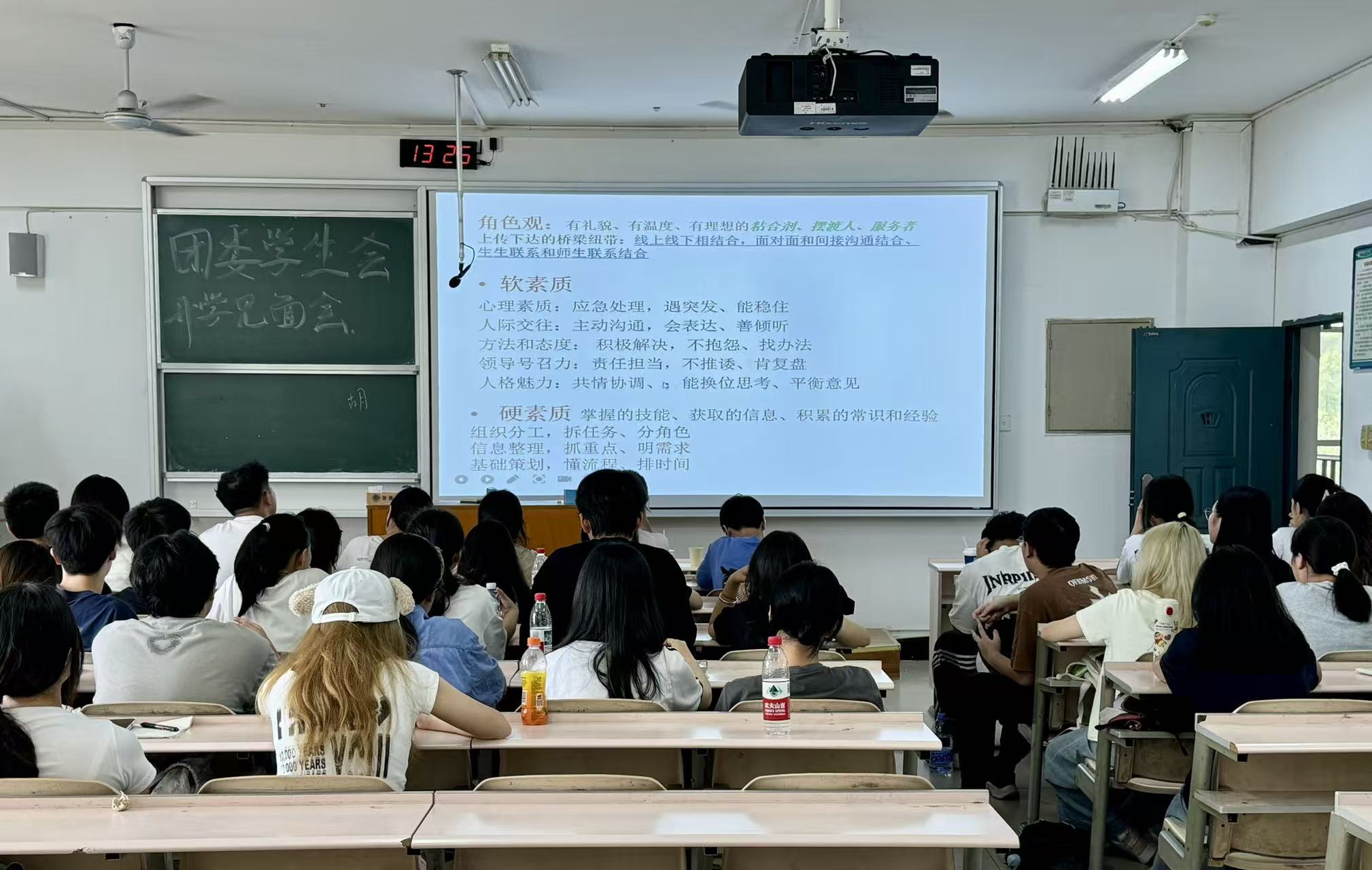随后,团委指导老师胡家颖开展了学生干部专题培训。她结合学院团学工作实际,从责任意识、服务能力和协作效率三个维度,对干部履职提出明确要求,旨在进一步提升团队的整体素质与工作效率。