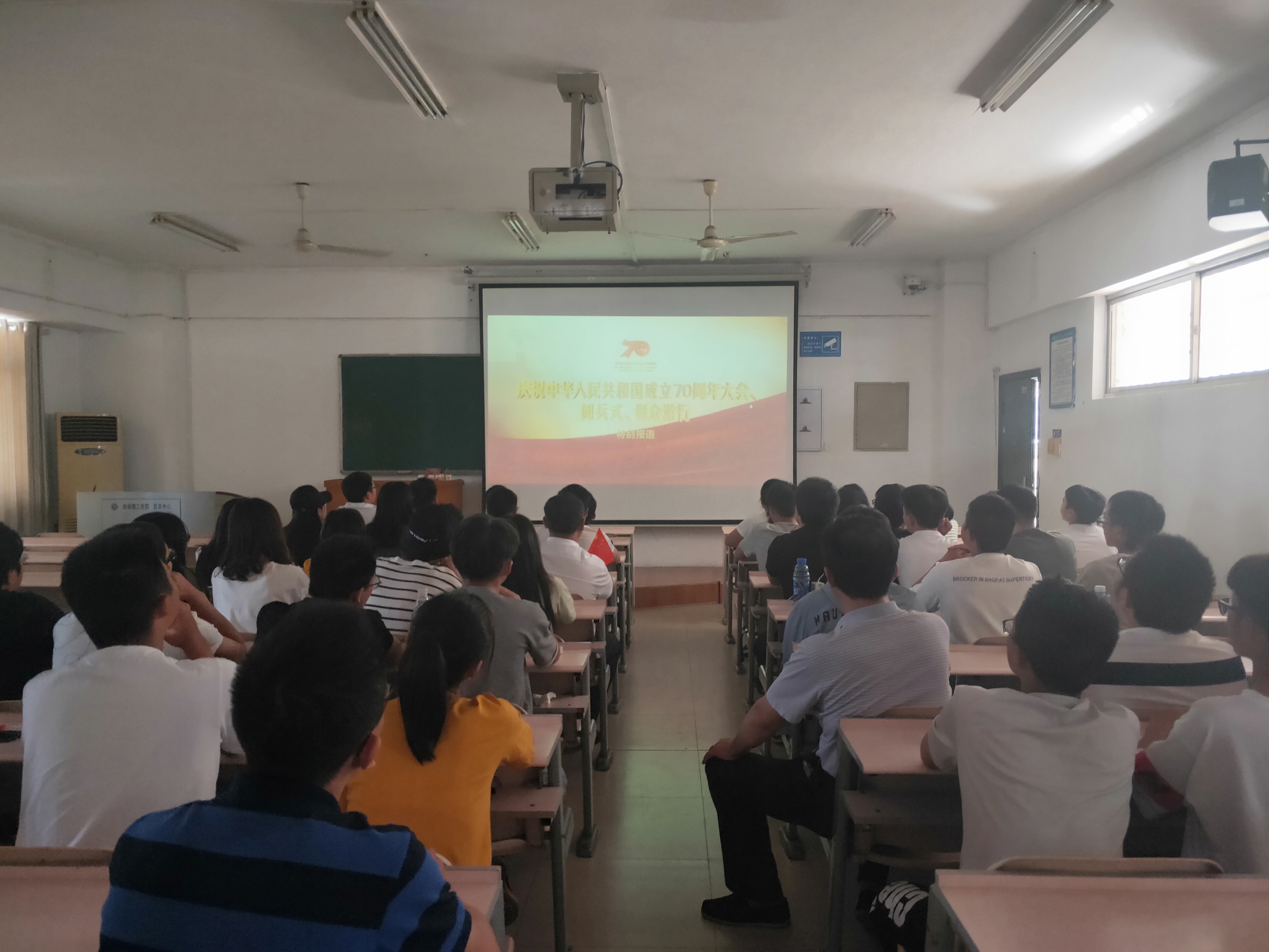 2019年10月1日上午9:30于5408、5411,97久久精品人人澡人人爽党总支组织观看“庆祝中华人民共和国成立70周年大会暨阅兵式”现场直播。学校总会计师汤福球老师,学院党总支相关负责人出席活动。我院学生党员、入党积极分子和留校学生参加此次活动。